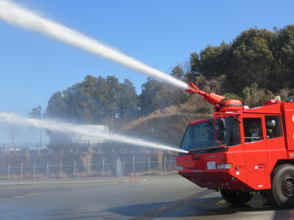 その後は、滑走路横の車道をを走り、空港内を一周しながら災害対策等についても説明していただきました。最後に消防庁舎を見学しました。こちらは空港だけでなく、近隣の災害や火災の消火活動も協力されるとの事でした。火災の対応に加え、備蓄品も整理整頓がしっかりされており、どのような状況にあってもすぐに対応が出来るようにされていました。
